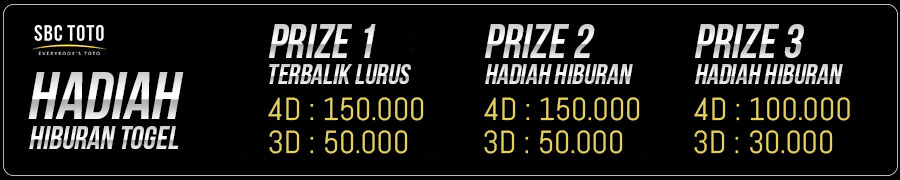 - Hadiah prize 2 : 4D = Rp. 150.000,- / 3D = Rp. 50.000,-